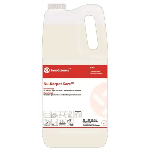 Nu-Karpet Kare is a concentrated all surface carpet and fabriccleaner and stain remover. It is non toxic, certified Ecologo and has no VOC's. FORPROFESSIONAL USE ONLY.