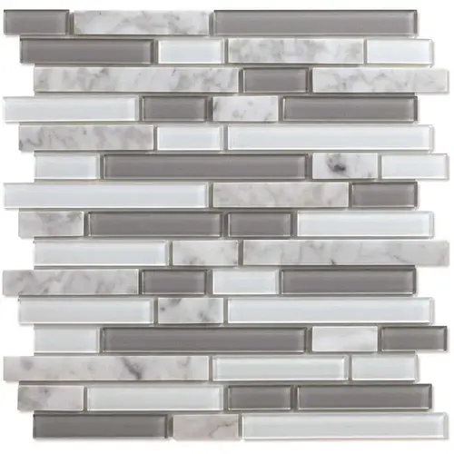 Inoxia Speedtiles Noriker White/Gray 11.57"x10.85" Metal Wall Tile, Peel & Stick Real Stone And Glass Tile For Wall Installation 2 Times faster to install than regular mosaic No mortar - No Mess Can be installed on any clean smooth leveled and non-porous surface e.g. primed drywall. Easy to maintain 5.23 sq. ft. per case. each case sold individually. case weight equals 11 lbs. 11.57 in. W x 10.85 in. L x 5 mm thick All online orders for this item ship via parcel ground and may arrive in multiple boxes Residential and commercial use P.E.I. rating 0 Mfg #IGS202NOR516/BX6