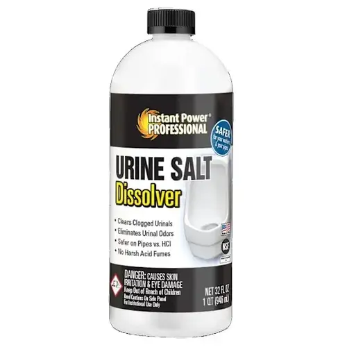 32 Oz Urine Salt Dissolver. Dissolves Uric Scale Buildup. Non-Hcl Formula. Less Corrosive Than Hcl. Safer On Pipes Than Hcl. No Harsh Acid Fumes. Bio-Degradable Surfactants. Nsf Certified. Mfg #8210
