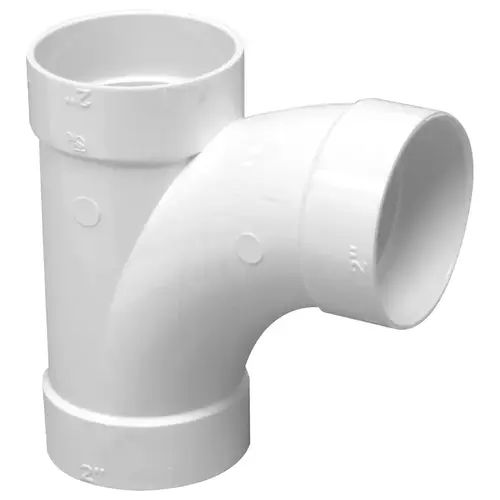 IPEX Sweep Pipe Tee, Nominal Size: 2 in, Socket Connection, PVC, White