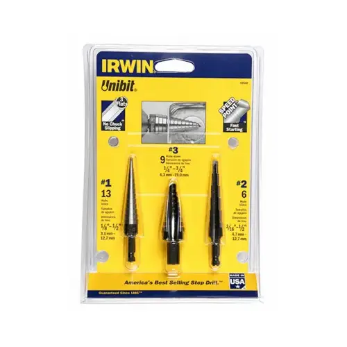 IRWIN Unibit Step Drill Set, HSS, 3 Piece, Includes: #1, #2, #3 Unibits