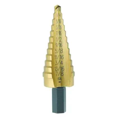 Self-starting bit features single flute cutting edge for greater control through steps. Three flatted shanks prevent slipping in drill chuck. SpeedPoint tip penetrates faster and prevents walking in applications such as drilling holes into stainless steel, copper, brass, aluminum, plastic, laminates and other thin materials up to 1/8 in thick.