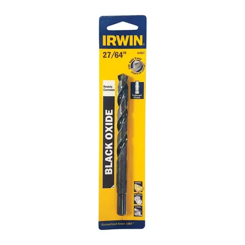 M-2 high-speed steel with black oxide coating for strength, heat resistance, and wear resistance in general drilling of wood, metal, and plastic. The 3/8 in reduced shank fits all 3/8 in drills while split point ensures a true start and eliminates bit walking.