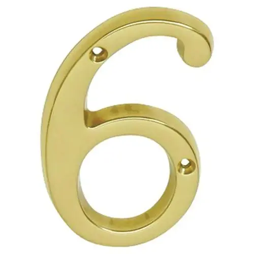 Schlage House Number, Character: 6, Character Height: 4 in, Character Color: Brass, Solid Brass, Includes: Brass Brad, Mounting Screw