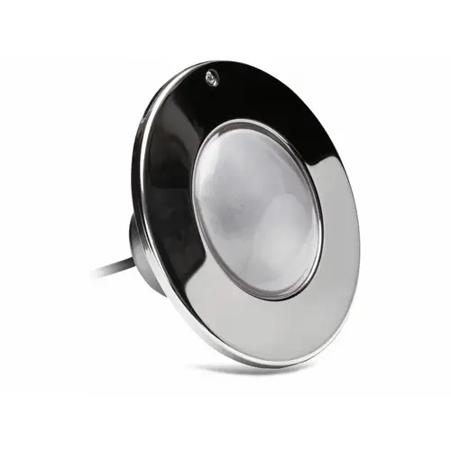 J&J Electronics 21043 Warm PureWhite LED Pool Light with 100' Cord 500W. J&J's PureWhite LED light fixtures are the standard in all White lighting for pools and spas. From its heavy gauge 316L stainless steel construction to the most advanced 50,000 hour rated LED engine on the market, J&J's PureWhite LED Pool and Spa light fixtures are engineered for performance and long term durability. That’s why PureWhite comes out of the box with the best 3-year limited warranty in the business.- PureWhite delivers up to 90% reduction in energy costs over incandescent lighting and as much as a 20X times longer lamp life. Even and smooth LED light distribution is ensured with J&J’s proprietary Zero-Pixilation lens system and you have two color temperature options to choose from; Cool White (6500K) creates that beautiful “daylight” look in the pool, or Warm White (2700K) LED’s match the soft glow of an incandescent light. PureWhite light fixtures are tested and approved for swimming pool use by Intertek ETL, a world leader in safety testing of electrical and lighting products. PureWhite LED Pool and Spa light fixtures come in 4 light output models. The F5W series at 87W and 4500Lm, is roughly equivalent to a 600W incandescent light. The F3W series at only 58 Watts and 3900Lm is equivalent to a 500W incandescent light. The F1W series at only 39 Watts and 2400Lm is equivalent to a 300W incandescent and lastly our S1W spa light model is 13 Watts and 700Lm, equivalent to a 100W Incandescent. These lights come in multiple cord length options as well as 120V or 12V rated power inputs.
