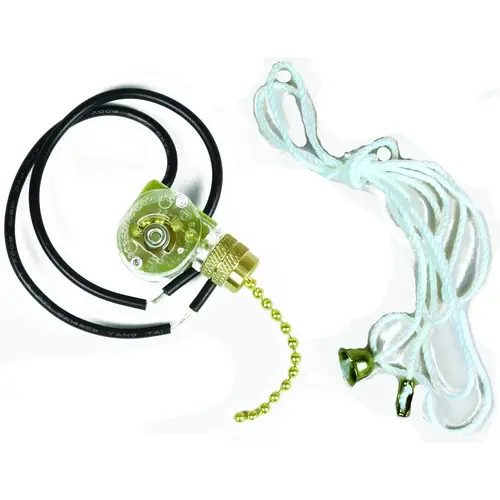 Jandorf Pull Chain Switch, 250 V, 3 A, Action: On/Off, Actuator Type: Pull Chain, Temperature Rating: 122 deg F, Brass