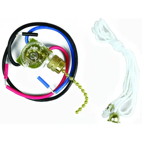 Jandorf Pull Chain Switch, 250 V, 3 A, Action: On/Off, Actuator Type: Pull Chain, Temperature Rating: 122 deg F, Brass