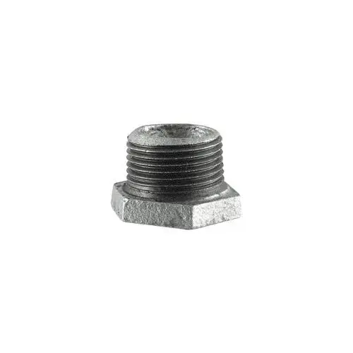 Galvanized malleable bushing. Galvanizing meets ASTM A-123 hot dip process. Protected from corrosion with varnish. For use with drinking water.