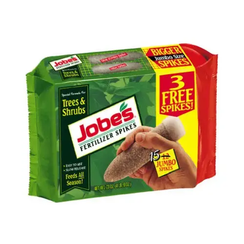 It's no secret that beautiful, healthy trees make your yard look spectacular. JOBE's fertilizer spikes for trees and shrubs ensure a continuous supply of nutrients below the surface, where the trees active roots are growing. JOBE's spikes are easy to insert around each tree's dripline and the slow-release formula lasts all season. No wasteful run-off, no mess, hazards or smells only a safe beautiful yard. For finest results, use JOBE's fertilizer spikes for trees and shrubs in early spring and late fall.