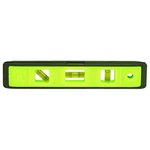 Find plumb, level and 45 deg quickly and easily with Johnson's 9 in Structo-Cast torpedo level. This level is durable and convenient, with Johnson's unique high-impact and non-corrosive Structo-Cast frame that was designed to withstand even the toughest jobsite abuse. It also features a top-read window for convenient, easy viewing, while the V-groove frame fits on pipe and conduit.