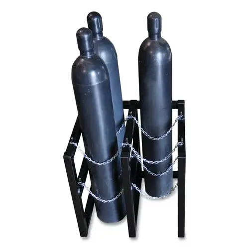 Features two levels of welded steel chains for each cylinder and clasps to connect the chains to the rack, ensuring a snug fit