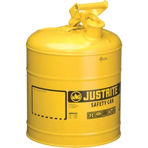 Type I Steel Safety Can for flammables, 5 gallon, S/S flame arrester, self-close lid, Yellow.