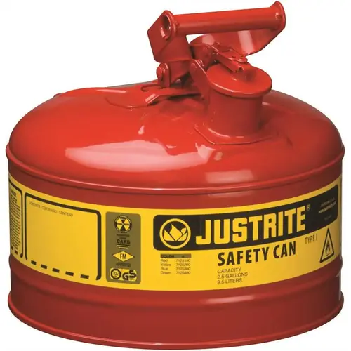 Type I Steel Safety Can for flammables, 2.5 gallon, S/S flame arrester, self-close lid, Red.