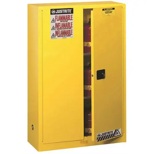 Justrite 894520 SAFETY STORAGE CABINET, 45 GALLON, 65 IN. X 43 IN. X 18 IN., SELF-CLOSE Yellow