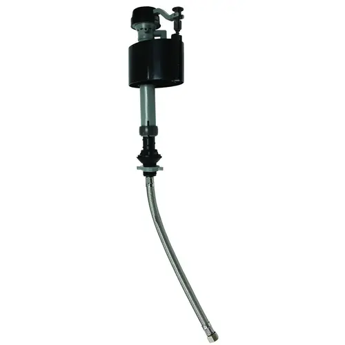 Keeney's secure connect fill valve with supply line. Easiest installation of a fill valve, fewer connections to make. The 12 in stainless steel supply line is permanently factory connected eliminating over tightening of the nut (and the leaks that over tightening causes). Universal fill valve adjusts to fit most toilets with a 9-1/2 to 13-1/2 in height range. Designed for a fast, quiet fill a new fill valve may fix noisy toilets, toilets that continually run and waste water, toilets that are leaking from the tank and toilets that are slow to refill the tank and bowl.