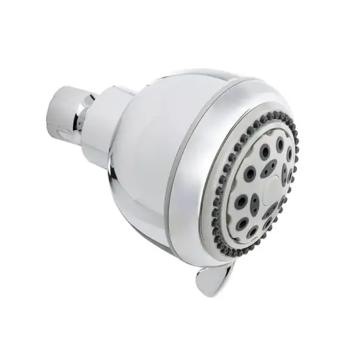 Plumb Pak Shower Head, Round, 1.8 gpm, Number of Spray Functions: 5, Spray Pattern: Bubble, Massage, Spray, Spray/Bubble, Spray/Massage, Polished Chrome, 3.35 in Dia
