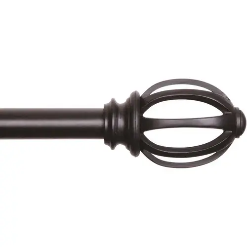 The Lilly Cage 5/8" Fast Fit Easy Install Decorative Window Curtain Rod by Kenney is as easy to hang as a picture frame. Position the innovative brackets onto the wall and tap the included nails into place. Using nails instead of screws leaves less damage behind on the wall. The easy installation doesn't sacrifice performance, as the Fast Fit curtain rods provide excellent support, up to 25 pounds. The telescoping metal rod adjusts from 66 to 120 inches to fit your window and projects 2.88 inches from the wall. A 5/8 inch diameter curtain rod is recommended for use with light to medium weight curtains in your bedroom, living room, dining room, kitchen, and more. Drapery Hardware Set Includes: one telescoping steel curtain rod with decorative finials (2.88" L x 1.88" W x 1.88" H), two brackets, one center support, nails, measuring template, and installation instructions.