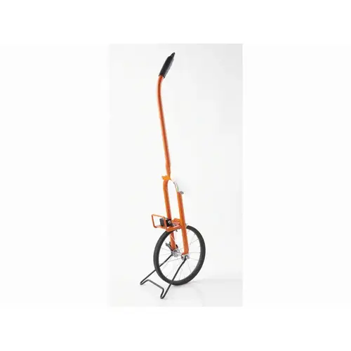 Spoked wheel with centerline functionality. No off set anything, great balance. Rugged 3/4 in steel tubing. Durable 3/8 in rubber on the wheel preserves the integrity of the wheel's shape. Time-tested and proven counters. Two moving parts (reset and ticker), unit of measure is feet. Compact fold down that reduces to 1/2 its size. Barrel clamp and handle clasp make storage easy.