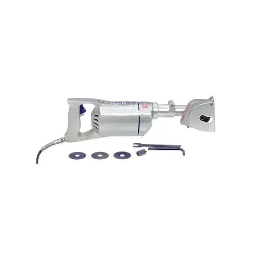 Get straight, smooth, and accurate cuts every time with the CRL Kett Panel Master Saw. It cuts up to 16 gauge mild steel, and zips through aluminum, fiberglass, plastic, and plastic laminates with minimum effort. Powerful industrial type 5.5 AMP, 1500 RPM motor. Includes two 2" (51 mm) and two 2-1/2" (63.5 mm) diameter Kett Blades. 110V AC.