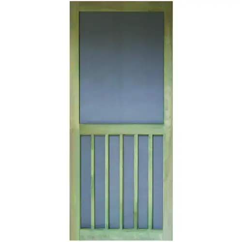 Stainable 5 bar ACQ treated wood, solid, thicker frame, wider stiles, double dowel for excellent performance, black fiberglass screen, 80 in H x 1-1/8 in Thick.