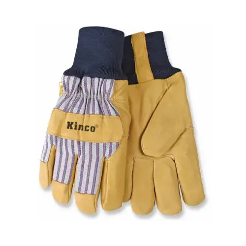 Heatkeep Protective Gloves, Men's Gender, Size: XL, Leather Palm, Blue/Tan, Wing Thumb, Knit Wrist Cuff, Lined