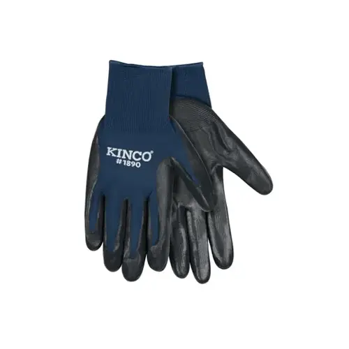 Navy blue nylon knitted shell, gray color smooth finish nitrile coated palm and fingers.