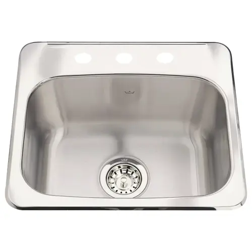 KINDRED Steel Queen Bar/Prep Sink, 20 ga, Bowl Width: 17 in, Bowl Depth: 8 in, Bowl Height: 12 in, Number of Bowls: 1, Number of Deck Holes: 3, 18-8 Stainless Steel, Top Mounting, 19-1/8 in OAW, 17 in OAH