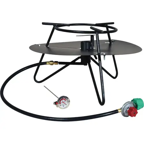Portable Propane Outdoor Cooker, 105,000 BTU, 12"" Tripod Jet Burner with Baffle, Attachable Heat Shield, Listed LP Hose and Adjustable Regulator with Type 1 Connection, Deep Fry Thermometer, Instruction/Recipe Booklet. CSA Design Certified.