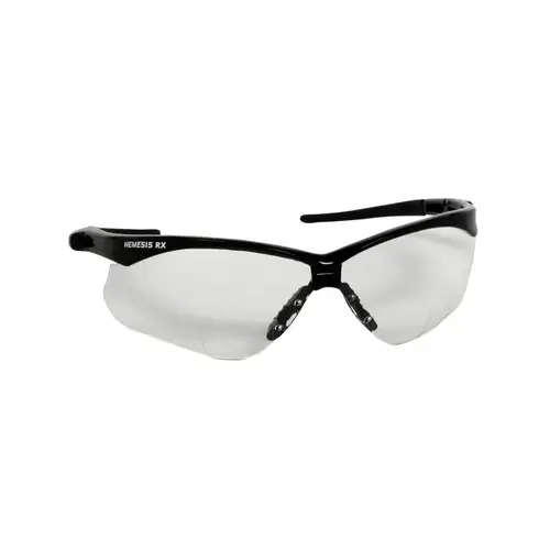The V60 Nemesis clear readers are designed for long-term comfort, thanks to flexible and lightweight design, soft touch temples and a nosepiece with integrated ridges to channel away sweat. These safety glasses have polycarbonate lenses that provide 99.9% UVA/UVB/UVC protection to help prevent eye damage like cataracts, retinal damage and other conditions that can cause temporary vision loss. The wraparound frame has a base curve of 8 that extends the range of peripheral protection, as well as soft touch temples for comfort. The corrective lenses are hard-coated for scratch resistance and longer life. Each pair of JACKSON SAFETY Nemesis safety glasses come with a neck cord for securing them, so that the glasses are ready to protect at a moment's notice. The safety eyewear is manufactured to comply with the ANSI/ISEA Z87.1+ standard for personal eye protection. Both men and women will find these stylish glasses to be comfortable and functional for construction, manufacturing and a host of other industries. Join the millions of people who choose Nemesis safety eyewear day in and day out for protection with unmatched style, comfort and quality.