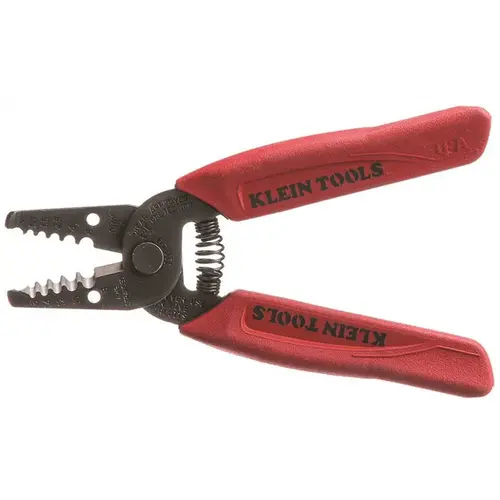 Klein Wire Stripper And Cutter For 8 To 16 AWG Stranded Wire. Cuts, Strips, Loops And Bends Solid And Stranded Wire. Strips 8-16 Awg Stranded Wire. Narrow Nose Fits Into Tight Places. Wire Looping And Bending Holes. Spring-Loaded Action For Self-Opening. Hardened Steel With Precision Ground Stripping Holes. Color-Coded Handles: Red Indicates Stranded Wire, Yellow Indicates Solid Wire. Black-Oxide Finish Resists Corrosion. Do Not Use For Cutting Steel Wire Or Bolts. Mfg #11049