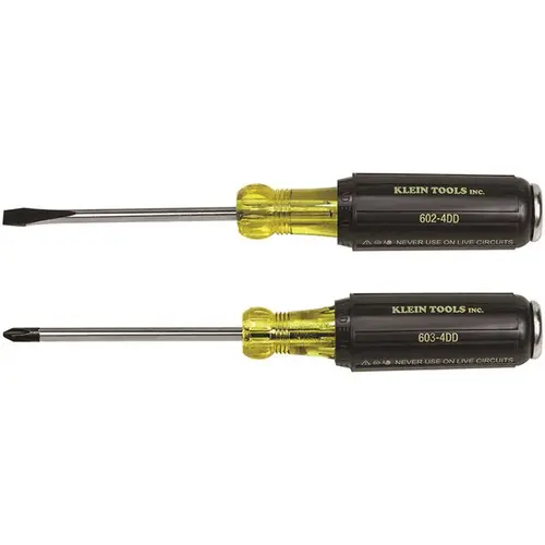 Klein Tools Demolition Driver Set. Engineered, Manufactured And Tested For Prying And Chiseling. Includes One #2 Phillips And One 1/4-Inch Demolition Screwdriver. Plated Metal Strike Cap Protects Handle From Hammer Blows. Heat Treated Blade Runs Complete Length Of Handle To Strike Cap To Transfer Force. Cushion-Grip Handle For Greater Comfort And Torque. Made In The Usa. Mfg #32008