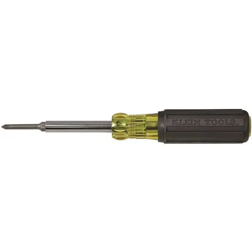 Klein Tools 6-In-1 Screwdriver/Nut Driver, 9 Inch. Interchangeable Shaft Holds 4 Universal Tips And Converts To 2 Nut Driver Sizes. Extended Shafts And Blades Provide 39-Percent Longer Reach. Extra-Long Shaft Provides Full Reach Of 4 Standard-Blade Screwdriver. Small Diameter Shaft For Comfortable Grip And Quick, Easy Turning. Contains: 1/4-Inch (6 Mm) Slotted, #2 Phillips, 1/4-Inch (6 Mm) And 5/16-Inch (8 Mm) Nut Drivers, #1 And #2 Square-Recess. Mfg #32560