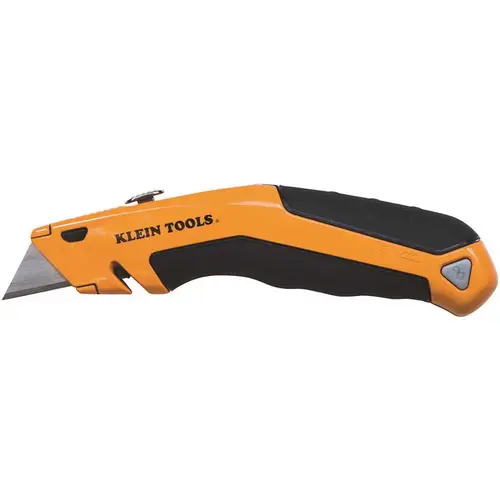 Klein Tools Klein-Kurve Retractable Utility Knife features a slightly curved design for improved comfort and cutting ability. An internal blade storage area in the handle can be accessed with a simple push of a button. The bright orange color makes this knife easy to find in a tool bag or pouch.
