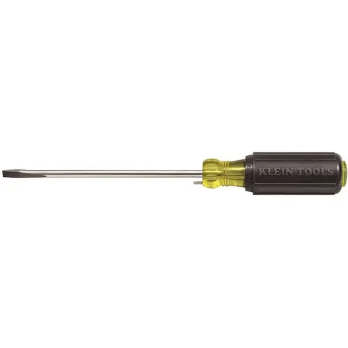 Klein Black Cabinet Tip Wire Bending Flat Head Screwdriver 10.34". Metal Stud Offers A Convenient And Easy Way To Bend, Loop And Connect Solid Wire When Installing Outlets And Switches. Cushion-Grip Handle For Greater Torque And Comfort. Premium Chrome-Plated For Smooth Feel And Corrosion Resistance. Internal Flanges Inside Handle Provide Solid, Twist-Resistant Blade Anchor. Special Heat-Treated Shafts. Precision-Machined Tip For Exact Fit. Tip-IdentQuickly Identifies The Screwdriver Type And Tip Orientation. Meets Or Exceeds Applicable Asme / Ansi Specifications. Mfg #6056B