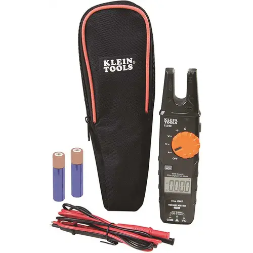 The CL360 Electrical Tester is an automatically ranging true root mean squared (TRMS) digital open jaw fork meter that measures AC current via the fork, AC/DC voltage, continuity, and resistance via test leads. It can detect the presence of voltage via the integrated non-contact voltage (NCV) tester. It includes a carrying case, test leads and 2 x AAA batteries.