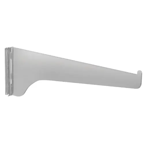 For use with the 80 Series standards. For shelving applications in light industrial, commercial and residential use. Standards can be mounted to nearly any type of wall. For storage and display applications in retail stores, grocery stores, light warehouses, repair garages, maintenance storage, business office storage and residential storage. Reinforced brackets lock into slotted standards for strong, secure weight-bearing support. Fully adjustable in 1 in increments. 16 ga cold rolled steel construction. Tested to meet or exceed ANSI performance standards as established by BHMA.