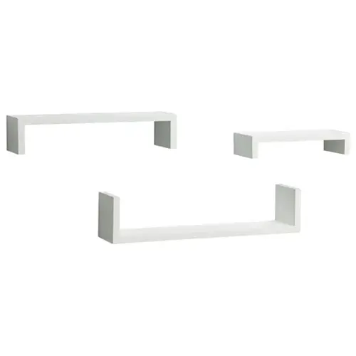 Three different sized floating ledge shelves can be arranged together or placed individually throughout the room for a striking effect. Each holds up to 40 lb when properly installed.