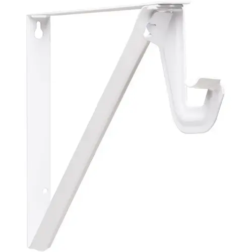 Ideal for shelves 11"- 18" deep and rods up to 1-3/8" diameter, this Shelf & Rod Bracket for home closets holds up to 500 lbs. per pair. The Slide-Thru feature lets hangers glide along the pole without obstruction. White finish.