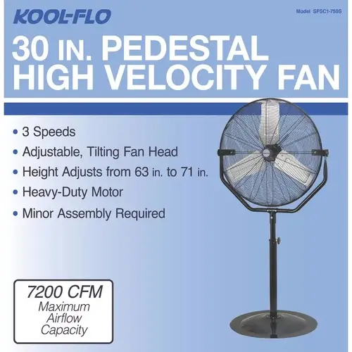 KOOL-FLO SFSC1-750S Pedestal Fan 72" H X 30" D 3 speed Powder-Coated Steel