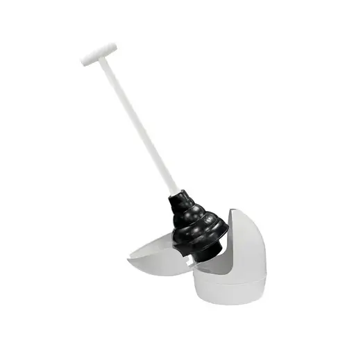 The toilet plunger and holder offers a decorative solution to concealing a plunger. The included sanitary holder contains a drip tray, air vents, self-opening and closing door and an easy carry design. The plunger offers a T-handle that allows for an optimum grip and effective plunge to clear a clogged toilet.