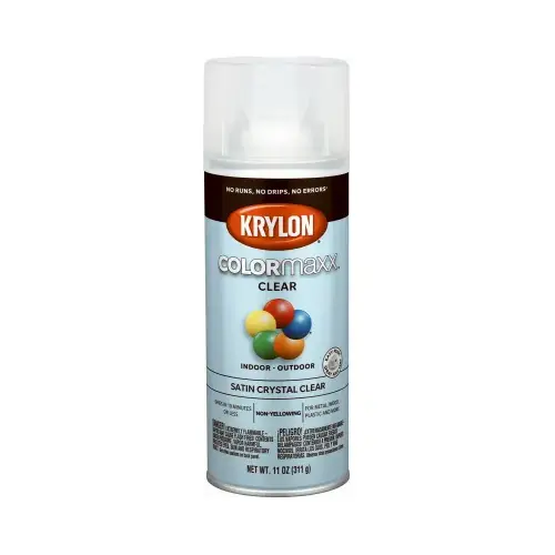 Krylon COLORmaxx acrylic crystal clear provides excellent adhesion, durability and a non-yellowing finish for added protection to a variety of projects.