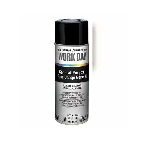 Krylon Work Day paint comes in black, has a gloss finish and is packaged 12 per case. Uses alkyd enamel as the base.