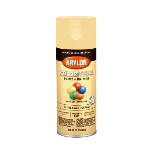 KRYLON DIVERSIFIED BRANDS K05542007 COLORmaxx Spray Paint + Primer, Gloss Sweet Cream, 12-oz.