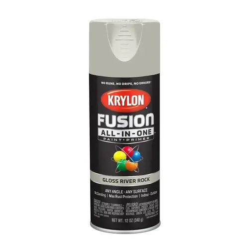 KRYLON K02721007 Fusion Primer and Spray Paint, Gloss, River Rock, 12 oz, Aerosol Can