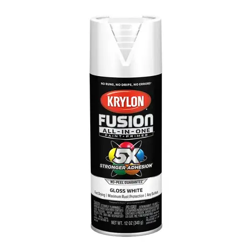 KRYLON K02727007 Fusion Primer and Spray Paint, Gloss, White, 12 oz, Aerosol Can
