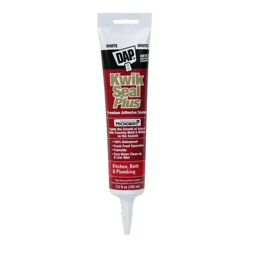 DAP KWIK SEAL PLUS kitchen and bath siliconized adhesive sealant contains Microban antimicrobial product protection to fight the growth of stain and odor-causing bacteria, mold and mildew on the sealant. The advanced Microban protection neutralizes bacterial and fungal growth where it lives and breads. This means the sealant is easier to keep clean and stays cleaner longer. This specially formulated siliconized adhesive sealant provides excellent adhesion and flexibility for a 100% waterproof and crackproof seal around tubs, sinks, showers, countertops and fixtures. KWIK SEAL PLUS is easy to apply and tool, paintable, low in odor and cleans up easily with water.
