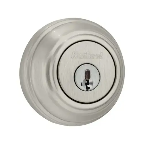 Kwikset Deadbolt, Security Grade: 1, Number of Cylinders: 2, Keyway Type: KW1, Key Type: K4, Strike Type: Round Corner, Backset Size: 2-3/8 to 2-3/4 in, Latch Type: Round Corner, Square Corner, Door Thickness: 1-3/8 to 1-3/4 in, Door Handing: Reversible, Universal, Commercial/Residential: Residential, Metal, Satin Nickel, Dimensions: 2-5/8 in H x 2-5/8 in W