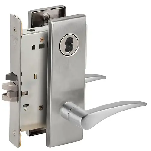 Grade 1 Apartment Entrance Mortise Lock, SFIC Prep Less Core, 12 Lever, N Escutcheon, Satin Chrome Finish, Right-Handed
