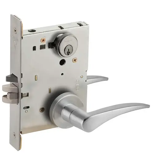 Apartment Entrance Mortise Lock, 12A Design, Symbols Only Indicator for Inside of Door, Right Hand, 6-Pin Full Face Mortise Cylinder, Satin Chrome