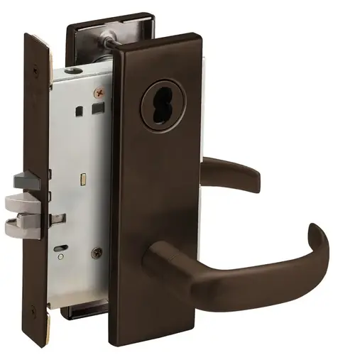Grade 1 Classroom Security Holdback Mortise Lock, SFIC Prep Less Core, 17 Lever, N Escutcheon, Dark Oxidized Satin Bronze Oil Rubbed Finish, Field Reversible